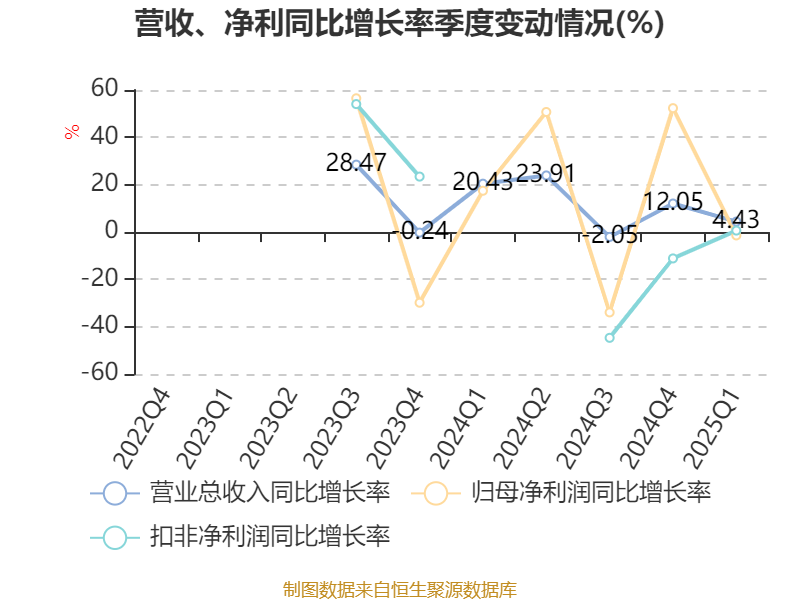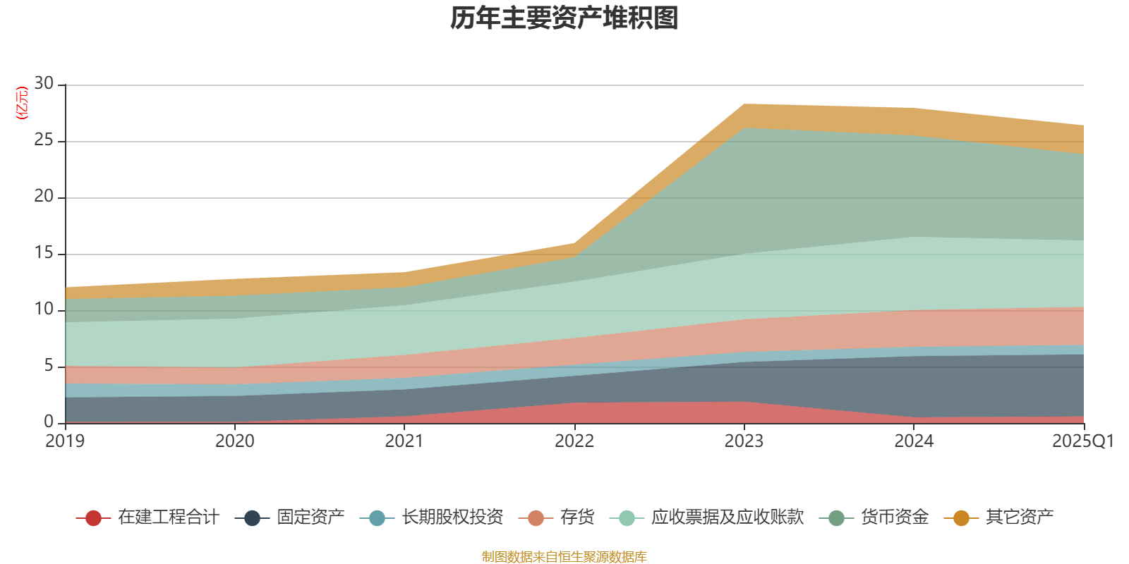 资产重大变化方面,截至2025年一季度末,公司货币资金较上年末减少14.83%,占公司总资产比重下降3.18个百分点;固定资产较上年末增加1.34%,占公司总资产比重上升1.41个百分点;存货较上年末增加3.1%,占公司总资产比重上升1.07个百分点;应收票据及应收账款较上年末减少9.32%,占公司总资产比重下降0.94个百分点。