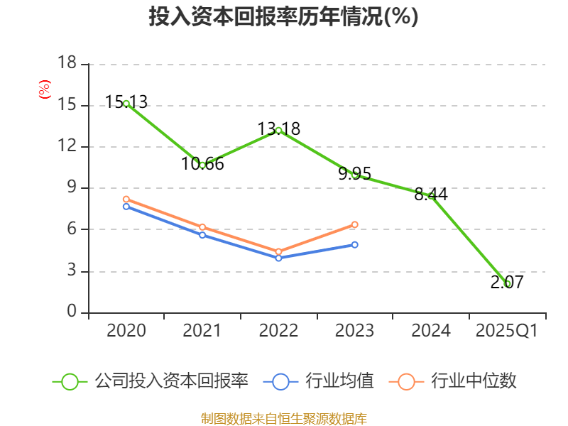 盈利能力方面, 2025年一季度公司加权平均净资产收益率为2.17%,同比下降0.12个百分点。公司2025年第一季度投入资本回报率为2.07%,较上年同期上升0.15个百分点。