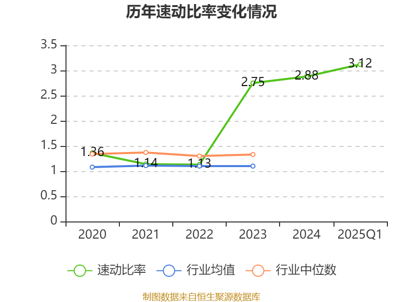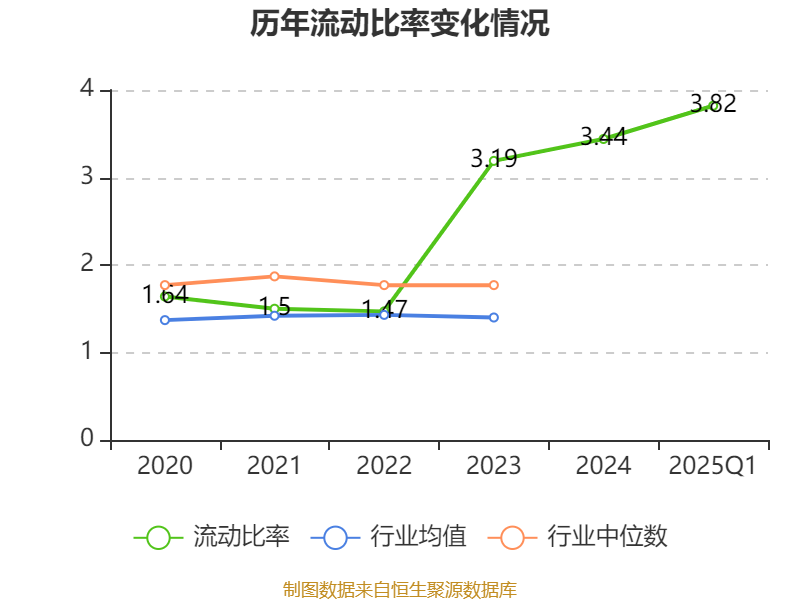 2025年第一季度,公司流动比率为3.82,速动比率为3.12。